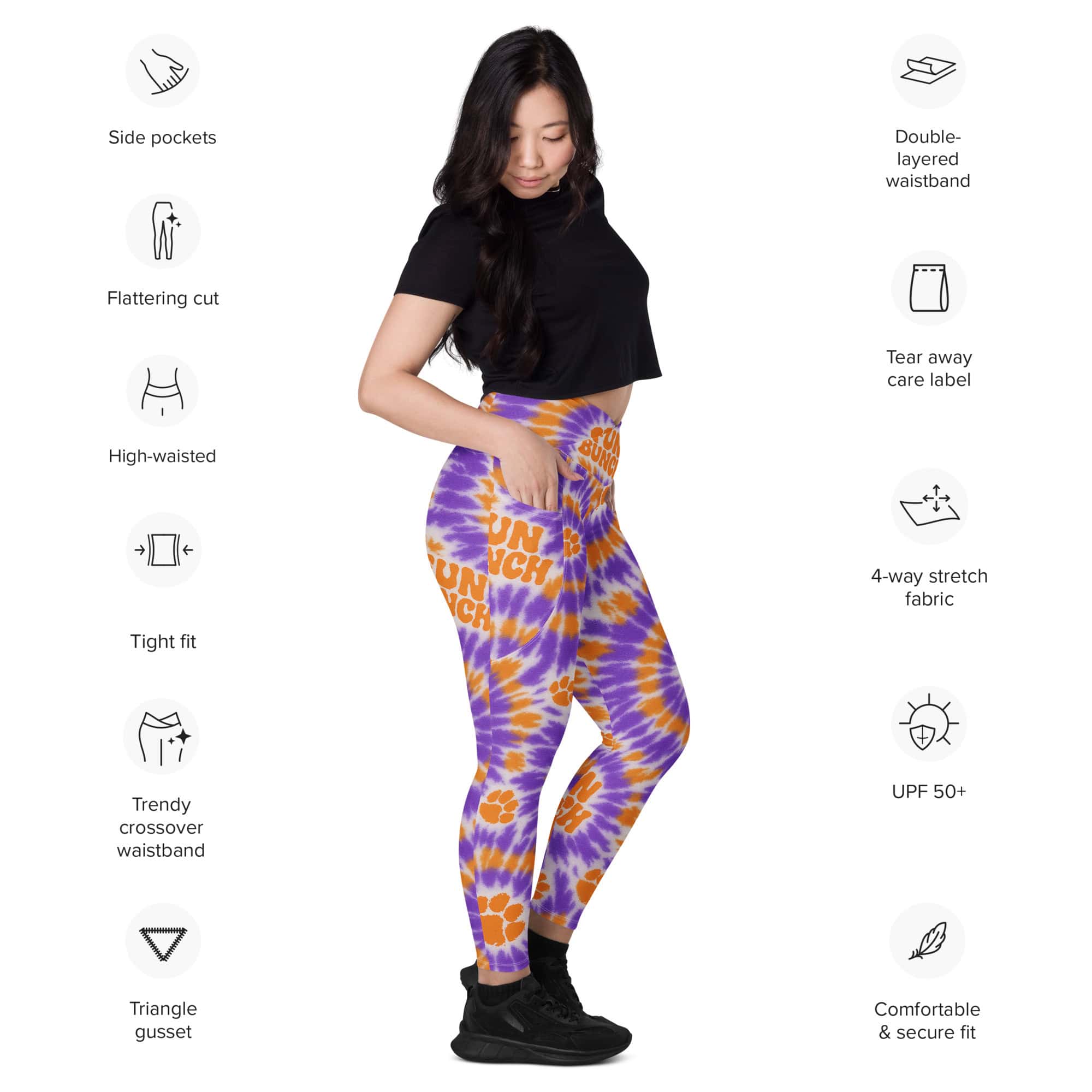 Treat yourself with the trendy and flattering crossover leggings with pockets. Feel exceptional comfort all through your training and keep your valuables close with the practical side pockets.